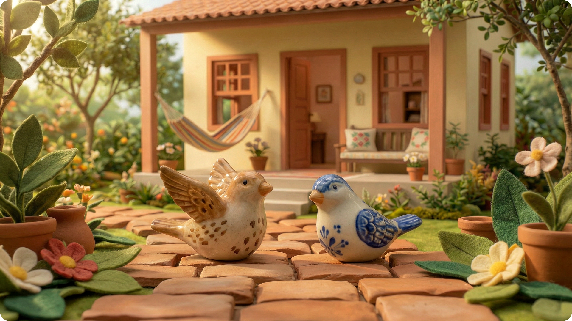Lugarim was born from the desire to create a place to slow down. It is an exercise in building atmosphere: a small world where time moves slowly, gestures are simple, and stories unfold almost in silence. The proposal was to develop a tour that follows an everyday routine inside a welcoming home, inhabited by characters that exist more through affection than through explicit narrative.