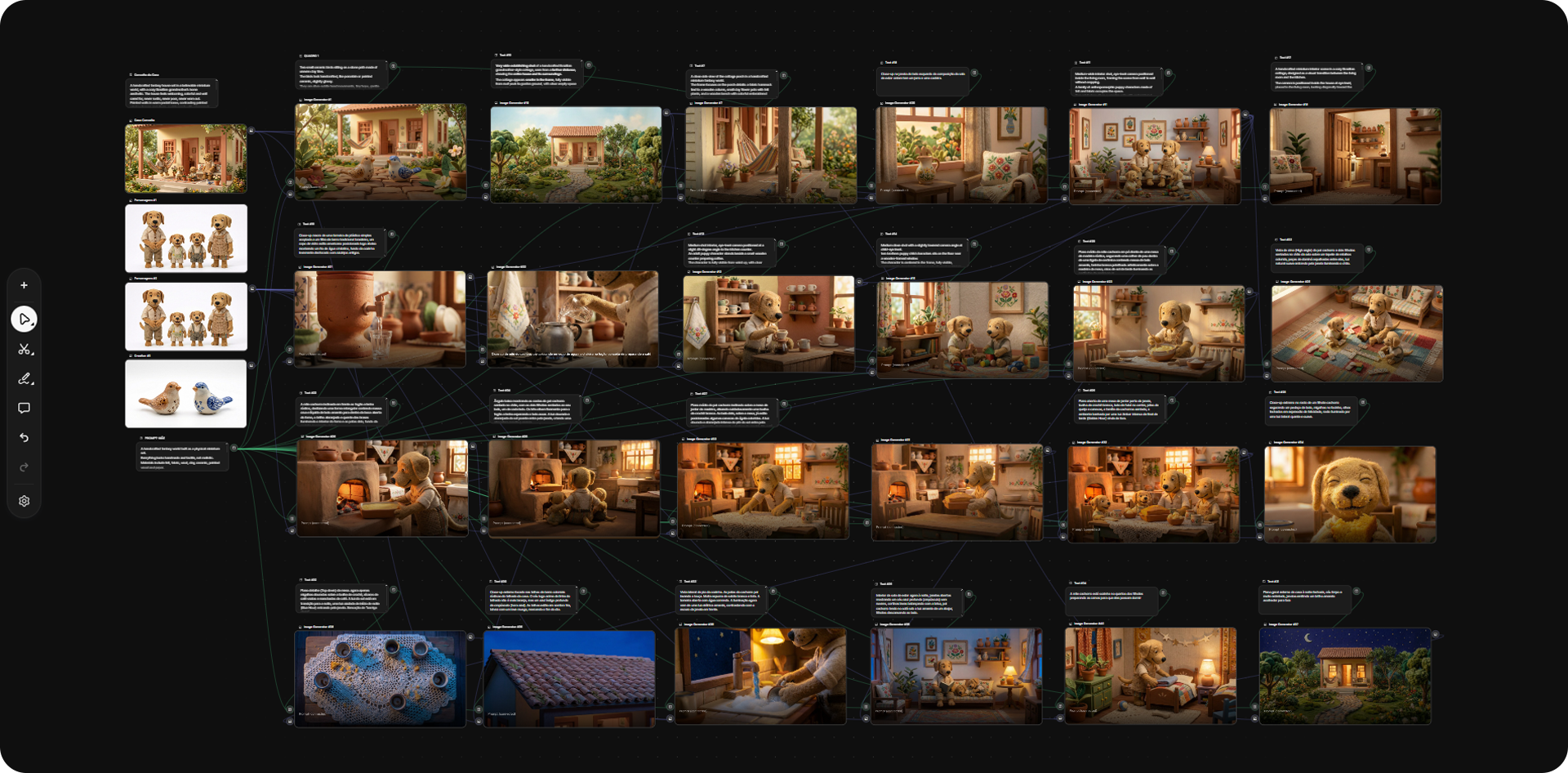 Toda a produção de imagens e vídeos foi realizada com apoio de IA generativa. O projeto foi organizado como um sistema visual, onde cenários, personagens e ações do cotidiano foram desenvolvidos de forma modular para manter consistência estética e ritmo narrativo ao longo do tempo. O fluxo de criação aconteceu no Spaces, da Freepik, utilizando a geração de imagens com Nano Banana Pro e a criação de vídeos com Kling 2.5. Ferramentas da Adobe, como Photoshop, After Effects e Premiere, foram usadas para refinamento, composição e edição final.