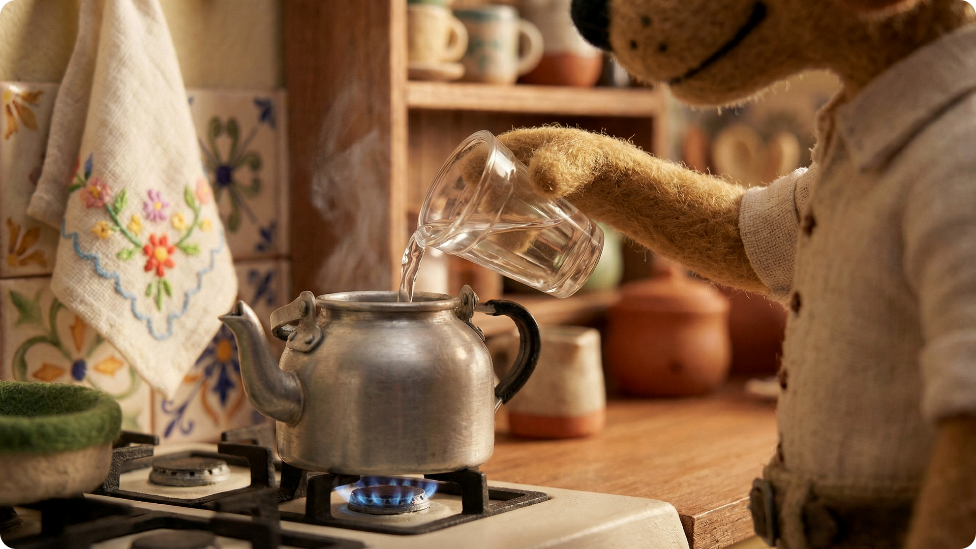 Todo o desenvolvimento partiu da busca por equilíbrio entre contemplação e detalhe. A direção visual prioriza ambientes quentes, luz natural, materiais orgânicos e cenas que convidam à observação prolongada. A animação acontece de forma sutil, respeitando o ritmo do espaço e deixando que o espectador perceba o passar do tempo através da luz, do clima e das pequenas ações do dia a dia. Aqui, o foco não é explicar, mas sentir. Um lugar para ficar um pouco.