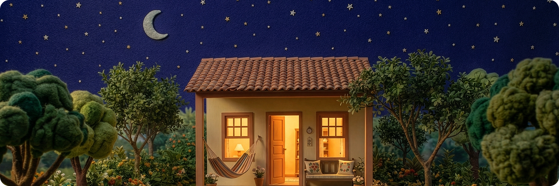 Lugarim nasce do desejo de criar um lugar para desacelerar. É um exercício de construção de atmosfera: um pequeno mundo onde o tempo passa devagar, os gestos são simples e as histórias acontecem quase em silêncio. A proposta foi desenvolver um tour acompanhando uma rotina cotidiana em uma casa acolhedora, habitada por personagens que existem mais pelo afeto do que pela narrativa explícita.